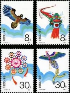 风筝又名“纸鸢”。相传春秋时公输般作木鸢以窥宋城,后来又用纸代木,称为“纸鸢”。五代时又在纸鸢上系竹哨,声如筝鸣,因此称“风筝”。式样繁多,有禽鸟虫鱼等。
